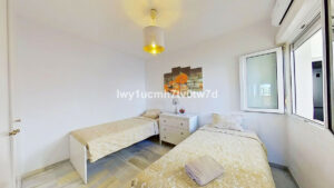 Se distribuye en 2 amplios dormitorios, 2 baños completos estilo moderno, amplio salón-comedor, cocina moderna completamente equipada, y se encuentra en la 2ª planta con ascensor en una urbanización con 2 piscinas y amplia terraza con bancos en la azotea a 150 metros del mar.