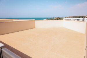 Destaca por su gran terraza privada con vistas despejadas al mar, ideal para relajarse y disfrutar del clima soleado característico de la región. Entre sus principales calidades se incluyen: