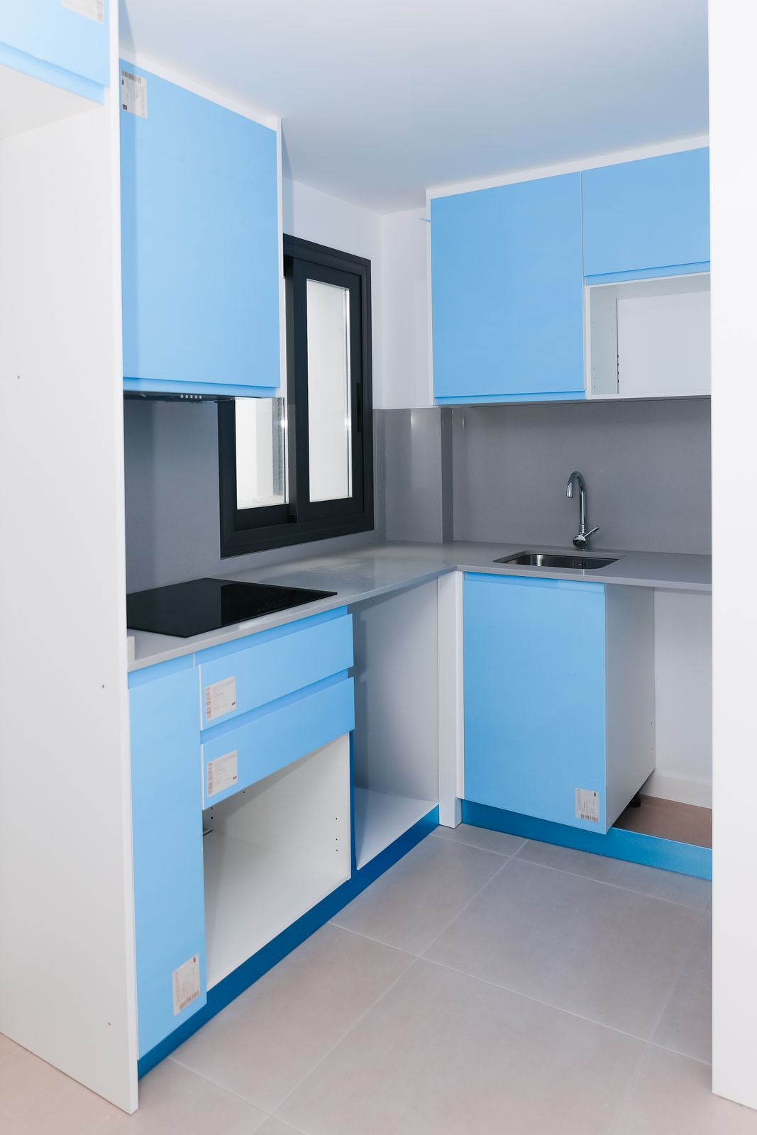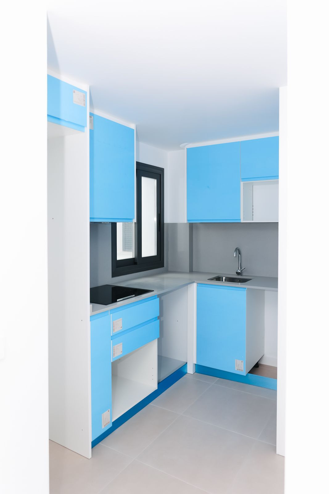 Cocina amueblada, incluyendo placa vitrocerámica, fregadero y campana extractora