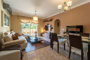 Se distribuye en tres dormitorios con armarios empotrados, radiadores en todas las estancias, aire acondicionado frío/calor en el salón, y un acogedor patio interior con luz natural que da acceso a una zona adicional de almacenamiento y entretenimiento.