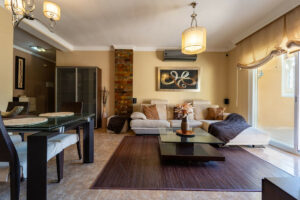 El salón cuenta con televisión, chimenea eléctrica, sistema de altavoces, alarma con cámara integrada, detector de humo, videoportero con cámara de videovigilancia y una puerta principal anti-intrusión con 4 puntos de seguridad, que garantizan mayor confort y protección.