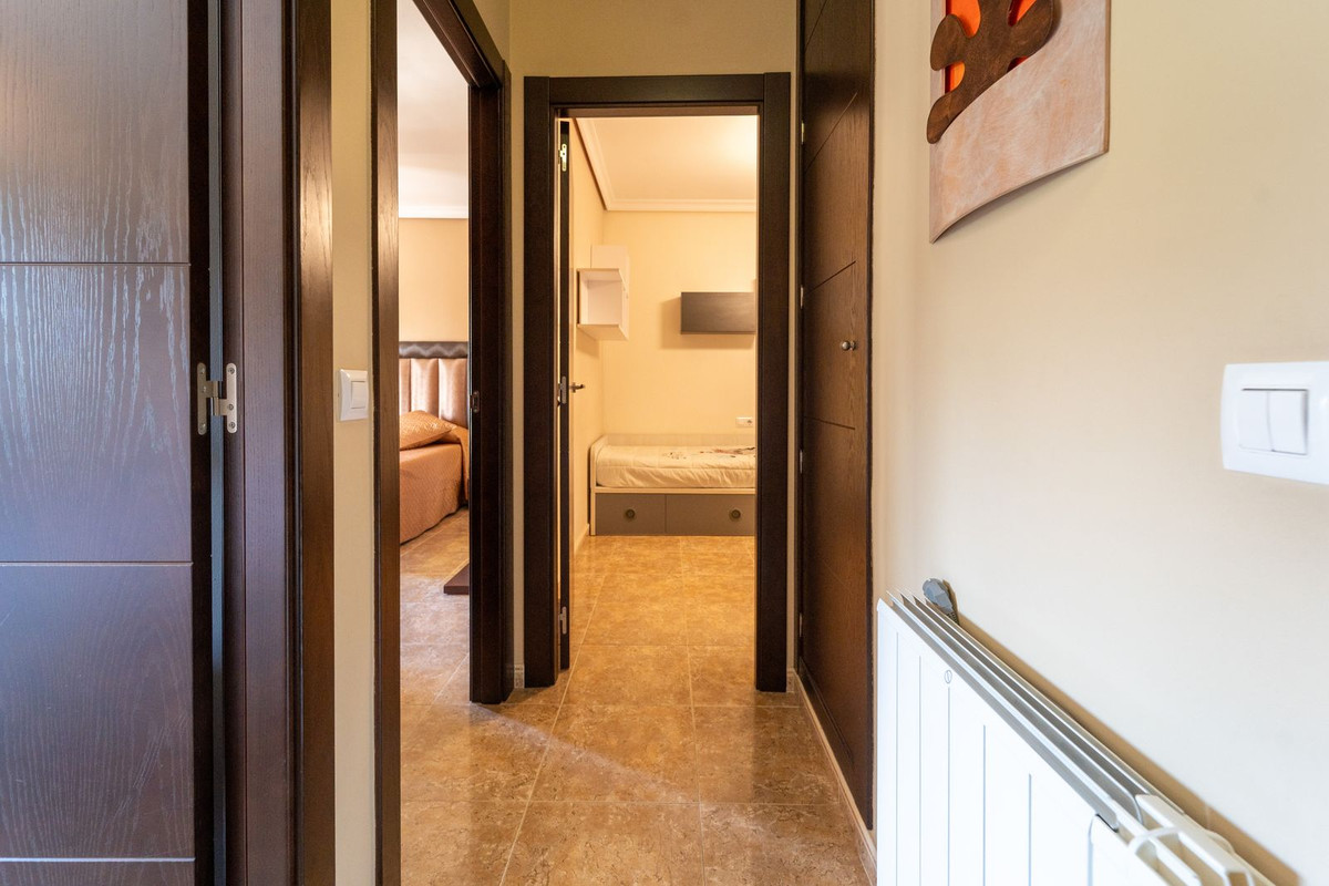 Se distribuye en tres dormitorios con armarios empotrados, radiadores en todas las estancias, aire acondicionado frío/calor en el salón, y un acogedor patio interior con luz natural que da acceso a una zona adicional de almacenamiento y entretenimiento.