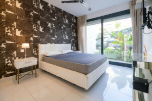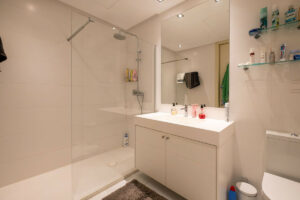 Este exquisito apartamento cuenta con 3 amplios dormitorios y 2 baños, uno de ellos en suite. Con orientación sur, disfruta de abundante luz natural durante todo el día. El apartamento está completamente amueblado con un diseño interior contemporáneo e incluye calefacción por suelo radiante en los baños para mayor comodidad. Las cortinas de cristal mejoran el espacio habitable, conectándolo perfectamente con el exterior, mientras que el jardín privado ofrece el entorno ideal para relajarse y entretenerse.