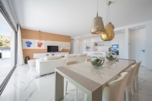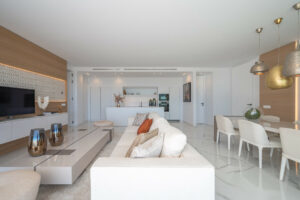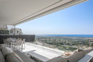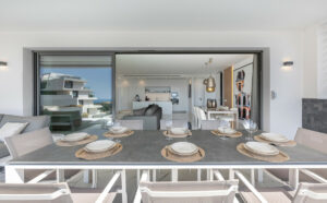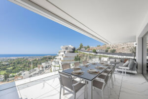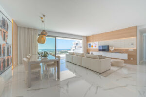 Consta de tres dormitorios siendo el principal en suite, su salón es amplio y en el encontramos una cocina de diseño y concepto abierto que nos comunica visualmente con el magnífico entorno exterior a través de una amplia terraza de 61 metros cuadrados.
