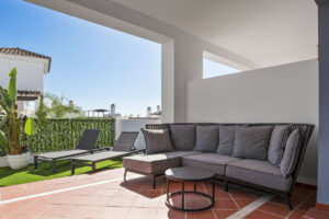 Lo que hace que este apartamento sea realmente especial es su amplia terraza privada, ideal para tomar el sol, comer al aire libre o simplemente disfrutar de la tranquilidad del entorno. Es perfecto para familias, parejas o quienes buscan un refugio espacioso dentro de un entorno estilo resort.