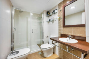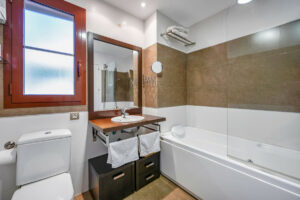 El apartamento goza de orientación sureste, lo que garantiza mucha luz natural durante todo el día. Desde el salón hay acceso directo a una terraza de 16 m², que puede cerrarse con cortinas de cristal para disfrutarla también en invierno. La terraza ofrece además una bonita vista a la piscina desde un lateral.