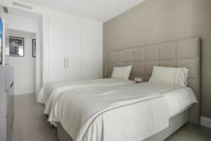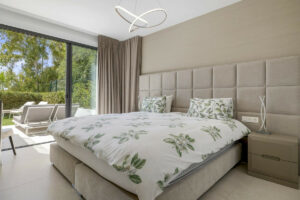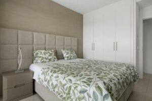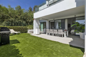 Dispone de 3 dormitorios y 2 baños, siendo el dormitorio principal en suite. La cocina, luminosa y espaciosa, es de concepto abierto, moderna y de tonos neutros, permitiendo que la luz natural inunde el espacio. Todos los dormitorios cuentan con armarios empotrados de alta calidad y acceso a una amplia terraza de 60 m² y un jardín de 77 m² que goza de gran privacidad al ser un apartamento de esquina.