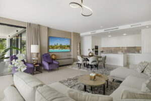 • Suelos de porcelanato • Ventanales de suelo a techo • Cocina totalmente equipada • Baño en suite • Armarios empotrados • Aire acondicionado frío/calor • Terraza privada con jardín • Gimnasio totalmente equipado • Plaza de garaje y trastero subterráneos • 3 piscinas ajardinadas • Jardines tropicales • Trastero • Aparcamiento para invitados