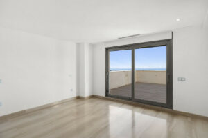 The master suite with walk-in wardrobe has direct access to the terrace and is on the opposite side of the apartment as the guest bedroom area of which one is en suite and also has access to the terrace.