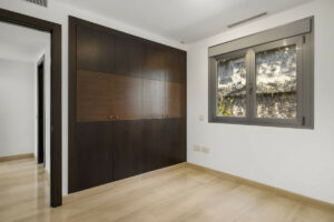 The living dining room measures around 80m2 and offers the possibility of different sitting areas. The modern fully fitted kitchen with an adjecent laundry room is separated through a sliding door from the living area.