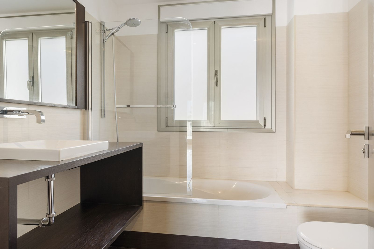 The master suite with walk-in wardrobe has direct access to the terrace and is on the opposite side of the apartment as the guest bedroom area of which one is en suite and also has access to the terrace.