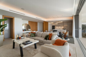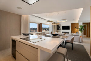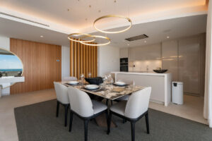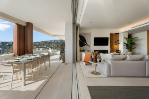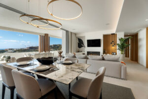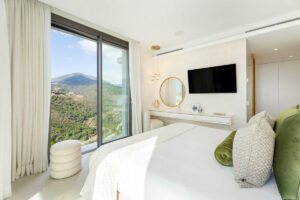 El alojamiento incluye tres amplios dormitorios, dirigidos por una lujosa suite principal con acceso directo a la terraza y vistas al oeste hacia La Zagaleta. Todas las habitaciones están equipadas con caja fuerte individual, y los baños están bellamente terminados a un alto nivel.