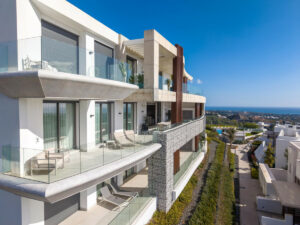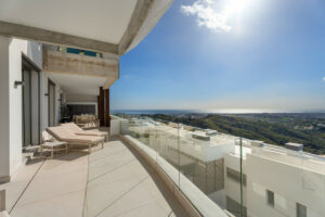 Esta residencia de primera planta goza de impresionantes vistas panorámicas al mar Mediterráneo, Gibraltar y las montañas del Atlas, visibles desde la amplia terraza privada y las principales zonas de estar. El apartamento se encuentra dentro de un bloque boutique de sólo cinco residencias y es una unidad de gama media con sólo un apartamento vecino, ofreciendo mayor privacidad y tranquilidad.