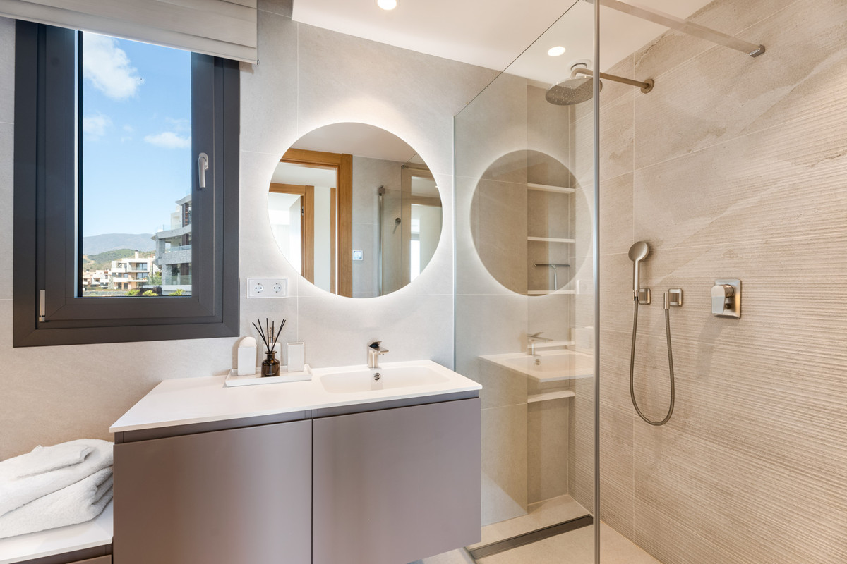 Esta residencia de primera planta goza de impresionantes vistas panorámicas al mar Mediterráneo, Gibraltar y las montañas del Atlas, visibles desde la amplia terraza privada y las principales zonas de estar. El apartamento se encuentra dentro de un bloque boutique de sólo cinco residencias y es una unidad de gama media con sólo un apartamento vecino, ofreciendo mayor privacidad y tranquilidad.
