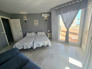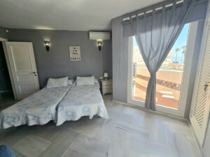 Dormitorio principal en suite, con baño completo exterior, armario empotrado y terraza privada.