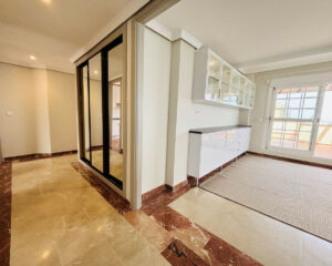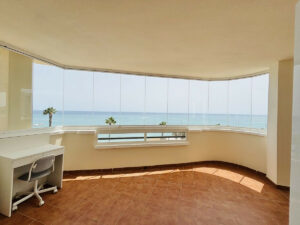 Descubra este precioso apartamento de 3 dormitorios y 2 baños con impresionantes vistas al mar y una atractiva orientación suroeste, ideal para disfrutar de impresionantes puestas de sol. Situado en una ubicación privilegiada junto a la playa, este espacioso apartamento cuenta con varias terrazas amplias, una de ellas cerrada con cortinas de cristal, lo que permite disfrutar del aire libre durante todo el año.