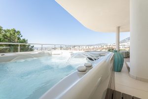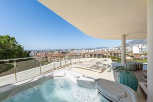 Un auténtico oasis privado con vistas panorámicas al Mediterráneo, donde podrás desayunar al sol, relajarte en el jacuzzi, organizar cenas al aire libre o simplemente disfrutar del clima privilegiado de la Costa del Sol durante todo el año.