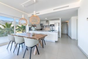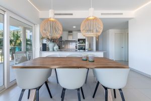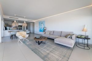 Este elegante apartamento de 122 m² útiles, situado en esquina y con orientación suroeste, ha sido diseñado para aprovechar al máximo la luz natural y las vistas abiertas al mar.