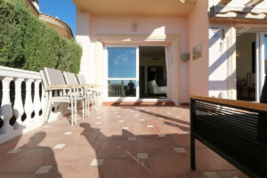 El apartamento cuenta con una de las mejores orientaciones para disfrutar del clima español, con una amplia terraza parcialmente cubierta que ofrece sombra en verano y una zona de protección cuando el sol baja en invierno.