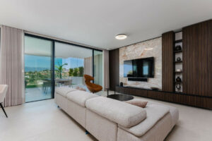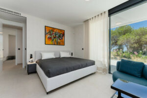 Tiene una distribución muy práctica que enfatiza la comodidad, la privacidad de los residentes y el uso de la luz mediterránea. La conexión de los espacios interiores con sus amplias terrazas también es posible gracias a los ventanales de alta calidad que van del suelo al techo. Las impresionantes vistas del mar Mediterráneo le acompañarán en cada rincón del espacioso apartamento.
