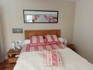 El ático dispone de tres amplios dormitorios, cada uno con baño en suite moderno, además de un aseo de invitados. La suite principal tiene acceso a la terraza principal, garantizando privacidad y comodidad tanto para la familia como para los invitados.