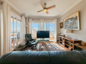 Apartamento en venta en , Mijas Costa con 3 dormitorios, 2 baños, 1 baño en suite y con orientación sur, con piscina comunitaria, garaje privado (1 plazas) y jardín comunitario. Respecto a las dimensiones, la propiedad presenta 127 m² construidos y 27 m² de terraza. Tiene las siguientes características servicios cercanos, transporte cercano, aire acondicionado, calefacción central, cocina totalmente equipada, cristal doble, teléfono, terraza privada, salón, vistas al mar, lavadero, internet – wi-fi, terraza cubierta, persianas eléctricas, armarios empotrados, comunidad cerrada, ascensor, vistas panorámicas, parque infantil cercano, cerca de playa / mar, cerca del golf, puertas de cristal, muebles opcionales, buen estado, cámaras de vigilancia y animales permitidos.