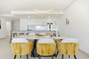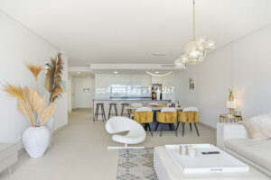 El inmueble es un apartamento en planta baja elevada que cuenta con tres amplios dormitorios, todos con armarios empotrados, y dos baños modernos. El salón-comedor de planta abierta ha sido acabado con un nivel de calidad excepcional e incluye una cocina NEFF totalmente equipada, complementada con un lavadero independiente con espacio para lavadora y secadora. El confort está garantizado durante todo el año gracias al aire acondicionado con control individual de temperatura en cada habitación y a la calefacción por suelo radiante en todo el apartamento.