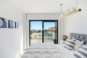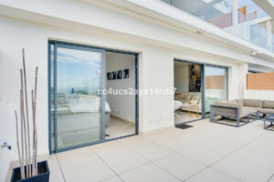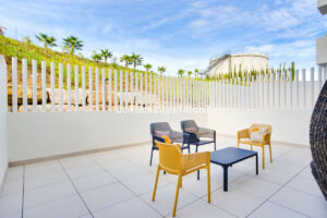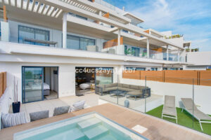 Una de las características más destacadas de esta vivienda son sus dos amplias terrazas, una al frente y otra en la parte posterior. La terraza delantera ofrece unas vistas al mar inmejorables, donde, en días claros, incluso se pueden admirar las cumbres nevadas de Sierra Nevada. Esta terraza también cuenta con toldos eléctricos que proporcionan sombra y confort con solo pulsar un botón, mientras que la terraza posterior está equipada con contraventanas para mayor privacidad y seguridad. La terraza delantera también incluye una pequeña piscina privada, perfecta para refrescarse mientras se disfruta del paisaje.