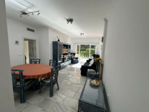 El apartamento ofrece tres amplios dormitorios y dos baños completos (que necesitan una reforma), el luminoso y espacioso salón-comedor se abre directamente a una terraza y jardín privados, perfectos para cenar al aire libre, relajarse o disfrutar del estilo de vida mediterráneo.