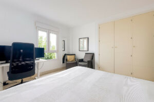 El dormitorio principal dispone de armarios empotrados y baño en suite, mientras que los otros dos dormitorios comparten un moderno baño familiar, ofreciendo flexibilidad para familia, invitados o incluso una oficina en casa.