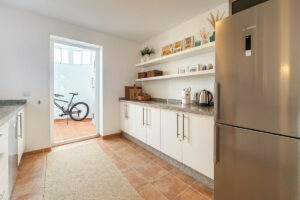 La cocina totalmente equipada cuenta con electrodomésticos de calidad, amplia superficie de trabajo y una práctica zona de lavandería, lo que la hace tanto funcional como elegante.