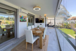 Apartamento de 3 dormitorios a estrenar con un amplio y soleado jardín. Esta propiedad cuenta con 3 amplios dormitorios y 2 baños. La comunidad ofrece instalaciones de lujo que incluyen piscina cubierta, varias piscinas al aire libre, gimnasio, pistas de pádel y mucho más. La propiedad se puede vender completamente amueblada, ¡así que solo tiene que traer su maleta! El jardín está completamente equipado con sistema de riego, jacuzzi y una hermosa zona de estar con pérgola. Los alrededores tienen mucho que ofrecer, con La Cala de Mijas y Fuengirola a solo 5 minutos en coche. Puede caminar hasta la playa en 10 minutos. Contáctenos ahora para reservar su visita.