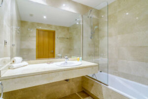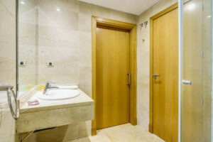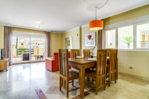 Se distribuye en PLANTA BAJA: consta de recibidor, cocina totalmente equipada con lavadero, gran salón-comedor con acceso directo a la terraza de 60 m2 en la que encontramos una piscina privada. Dos dormitorios con dos baños, el principal cuenta con vistas y salida directa a la piscina de la propiedad.