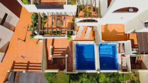 La URBANIZACIÓN CERRADA cuenta con jardines comunes, una plaza y piscina comunitaria.
