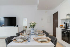 El apartamento dispone además de licencia turística en vigor, un aspecto especialmente relevante para inversores que buscan rentabilidad. Propiedades similares de tres dormitorios dentro de la misma comunidad están alcanzando actualmente una ocupación aproximada del 66 %, con tarifas nocturnas superiores a 200 €, lo que demuestra un rendimiento de alquiler sólido y contrastado cuando la vivienda no está en uso personal.