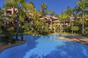 Situado en la urbanización cerrada Alicate Playa, fase 4, una de las más consolidadas y valoradas del conjunto, este apartamento se encuentra a pie de una de las mejores playas de arena fina de Marbella, con acceso directo al paseo y al mar.