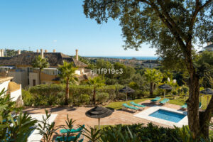 Elviria Hills ofrece un entorno exclusivo con jardines tropicales perfectamente cuidados, varias piscinas, gimnasio, canchas de tenis y un hermoso campo de golf de 9 hoyos con campo de prácticas. La casa club, situada junto a un lago sereno, alberga el reconocido restaurante El Lago, un espacio único para disfrutar de la mejor gastronomía.