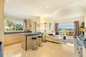 El apartamento se presenta en excelentes condiciones, amueblado y listo para entrar a disfrutar. Su diseño de planta abierta crea un ambiente luminoso y acogedor, con un salón-comedor que conecta de manera natural con una encantadora terraza donde relajarse durante todo el año. Desde aquí, podrá deleitarse con vistas espectaculares al mar, al lago y al campo de golf.