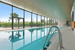 Complejo en primera línea de playa con todas las instalaciones deportivas (gimnasio, pádel, piscina interior y exterior, sala de conferencias).