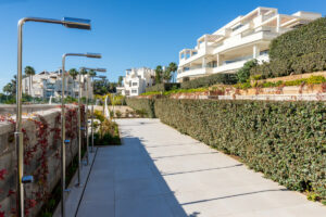 El complejo está situado en primera línea de la playa con el paseo marítimo corriendo directamente en frente dando fácil acceso en bicicleta a la ciudad de Estepona. El popular chiringuito Velerin se encuentra a pocos pasos de distancia y el Kempinski está a pocos minutos en coche.