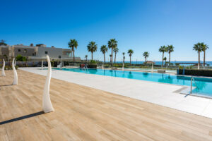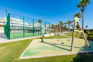 El complejo Velaya está recién terminado y tiene muchas instalaciones privadas, incluyendo una piscina climatizada al aire libre, pádel, pista de tenis completa y un jacuzzi. También hay acceso directo a la playa y seguridad las 24 horas.