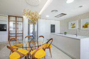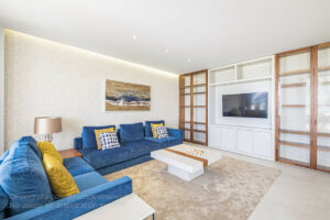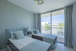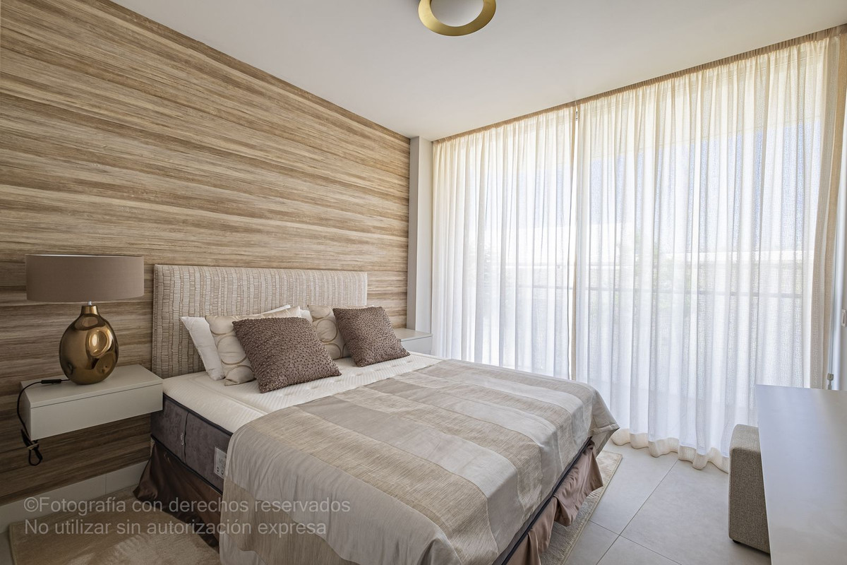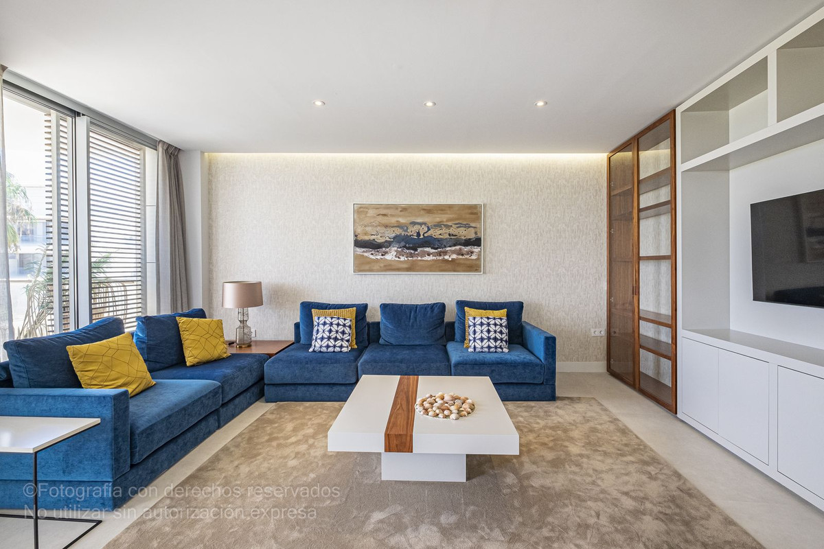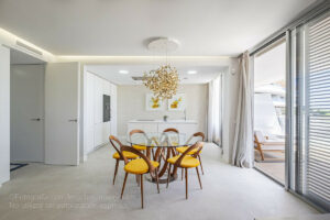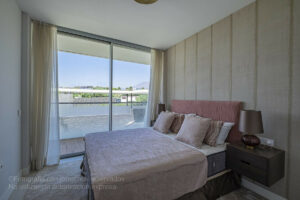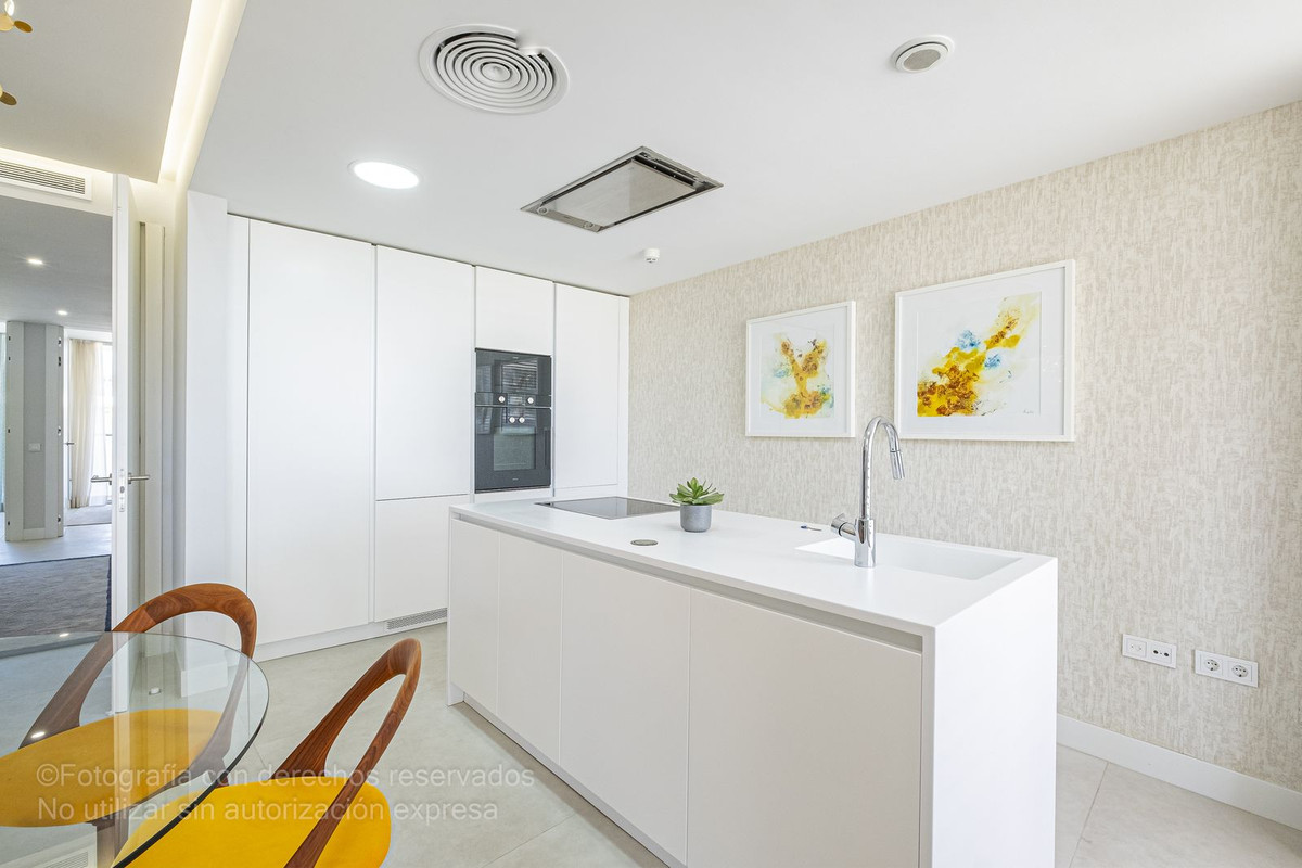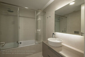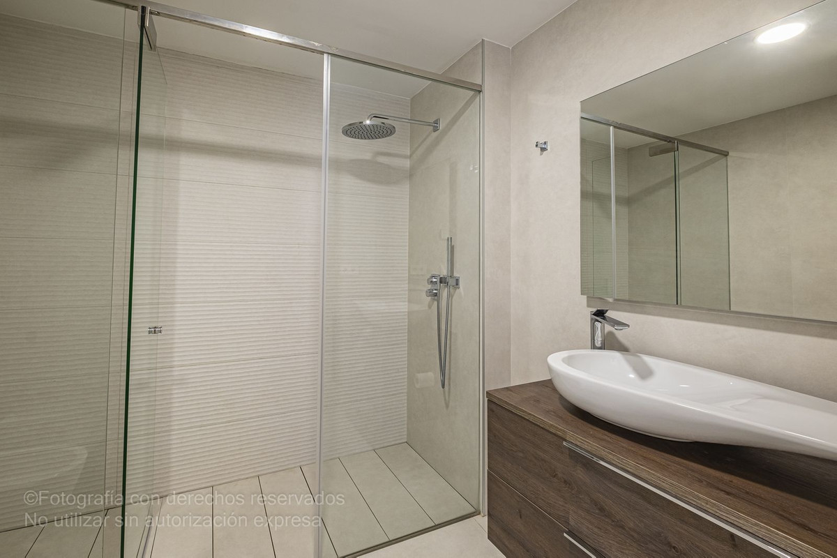 Este sofisticado apartamento de 3 dormitorios cuenta con una terraza principal orientada al sur. Dispone de 2 baños, uno con ducha y otro con bañera, además de un aseo de cortesía. El apartamento incluye calefacción por suelo radiante, aire acondicionado frío/calor, un sistema de control domótico y está conectado a un sistema de alarma central.