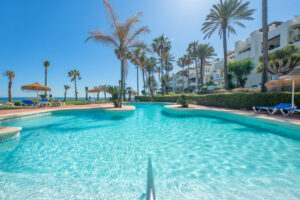 Este complejo residencial cuenta con acceso directo a la playa y al paseo marítimo, 5 piscinas, jardines tropicales, restaurantes, gimnasio, seguridad 24 horas, pista de padel, pista de tenis, un pequeño campo de fútbol y mucho más.