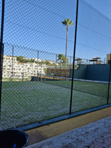 La urbanización dispone de piscina, jardines cuidadosamente mantenidos, pista de pádel, cancha de fútbol sala, zona infantil y área de ejercicio al aire libre.