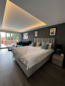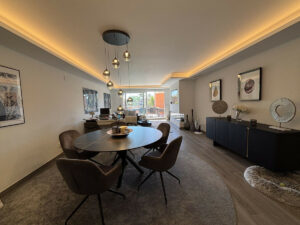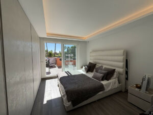 Totalmente renovado con las más altas calidades, este amplio apartamento de 3 dormitorios en suite se encuentra en la prestigiosa urbanización de playa Alhambra del Golf. Ofrece un luminoso salón de planta abierta, cocina moderna equipada y una gran terraza con vistas a los jardines, la piscina y la emblemática montaña de La Concha.