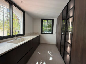 El apartamento ha sido totalmente reformado con exquisita atención al detalle y equipado con acabados de alta gama para el máximo confort. Una moderna cocina de diseño con electrodomésticos premium, tres dormitorios luminosos, dos baños contemporáneos, y una sala multiusos adicionales proporcionan un amplio espacio para la vida familiar.