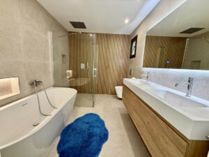 Las características adicionales de lujo incluyen calefacción por suelo radiante en los baños, aire acondicionado regulable individualmente y persianas eléctricas.