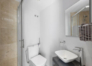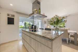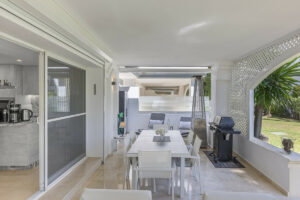 En el interior, encontrará tres dormitorios y tres baños (dos en suite). El salón se integra en una zona de comedor y cocina de concepto abierto, con barra de desayuno y amplio espacio de almacenamiento. Hay una chimenea moderna para las noches más frescas, y el dormitorio principal cuenta con vestidor, un espacio de almacenamiento adecuado que se agradece cuando no se vive de maletas. La terraza cubierta de 20 metros cuadrados tiene espacio para una mesa de comedor y una zona de estar, permitiéndole disfrutar de comidas al aire libre la mayor parte del año. Todos los baños son contemporáneos y toda la propiedad presenta tonos neutros que no pasarán de moda rápidamente.