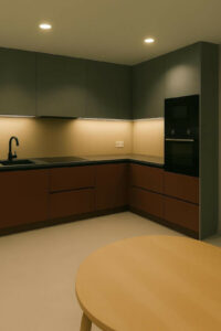 Actualmente, el apartamento está siendo sometido a una reforma integral, con un enfoque en el diseño contemporáneo y acabados premium. El corazón de la vivienda lo forma un espacio abierto donde se integran el salón-comedor y la cocina americana, ideal tanto para el día a día como para recibir invitados.