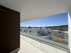 El apartamento cuenta con tres dormitorios de generosas dimensiones, incluyendo uno con baño en suite, complementado por un baño adicional y dos aseos. Los espacios habitables están diseñados cuidadosamente, con una sala de estar luminosa y aireada, un comedor y una cocina totalmente equipada con un lavadero. Los acabados de alta calidad y las comodidades modernas, como aire acondicionado, calefacción central y un sistema de refrigeración en el techo, garantizan comodidad durante todo el año. La propiedad también se beneficia de tecnología aerotérmica avanzada y paneles solares, reflejando un compromiso con la eficiencia energética.